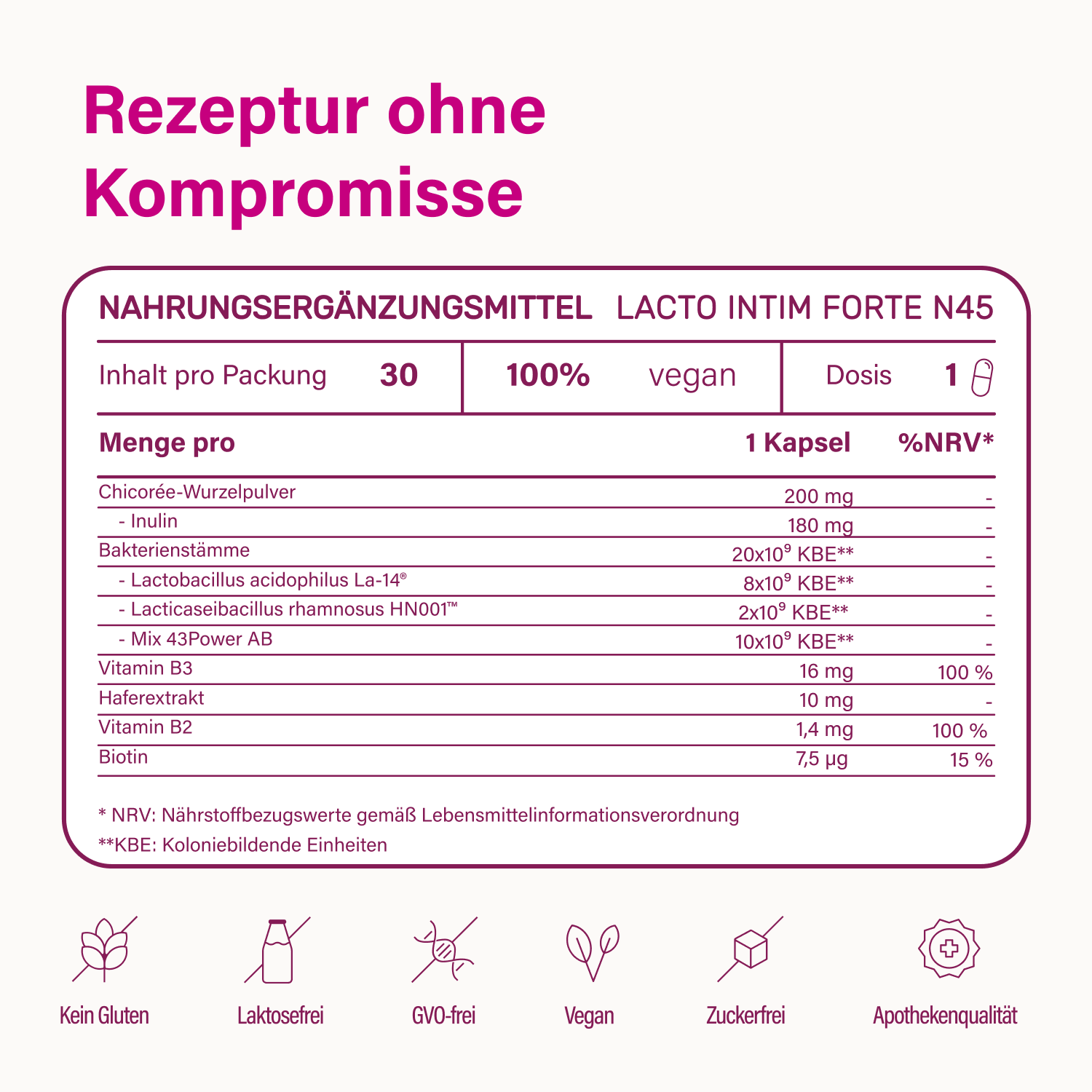 - 20 Milliarden KBE pro Kapsel, garantiert stabil über die gesamte Haltbarkeit
