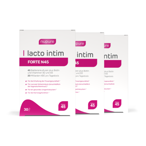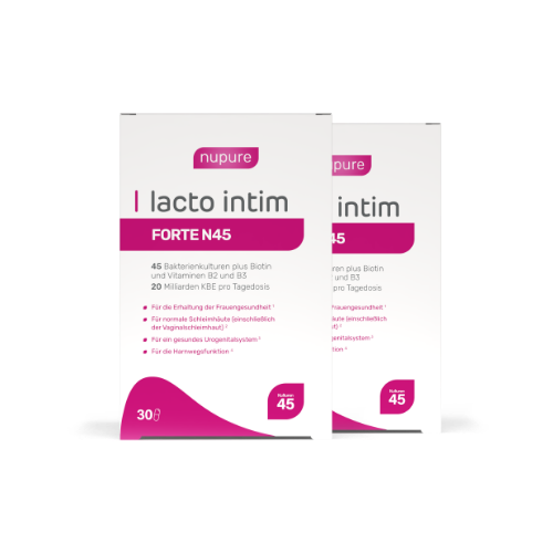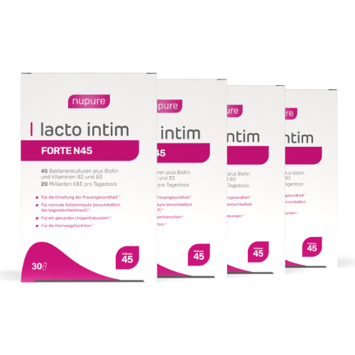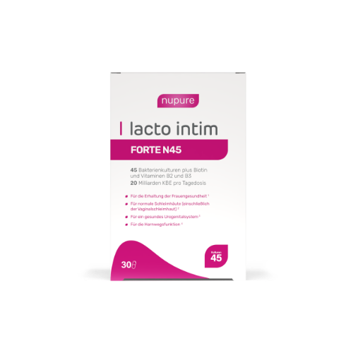 Im Gegensatz zu vielen Standardprodukten enthält Lacto Intim FORTE N45 45 dokumentierte Milchsäurebakterien-Stämme – darunter die wissenschaftlich gut untersuchten Stämme La-14® und HN001™ – sowie die eigens entwickelte ProbaTech11™-Mischung von Nupure. Die Zusammensetzung ist wissenschaftlich fundiert und speziell auf die vaginale Gesundheit abgestimmt.